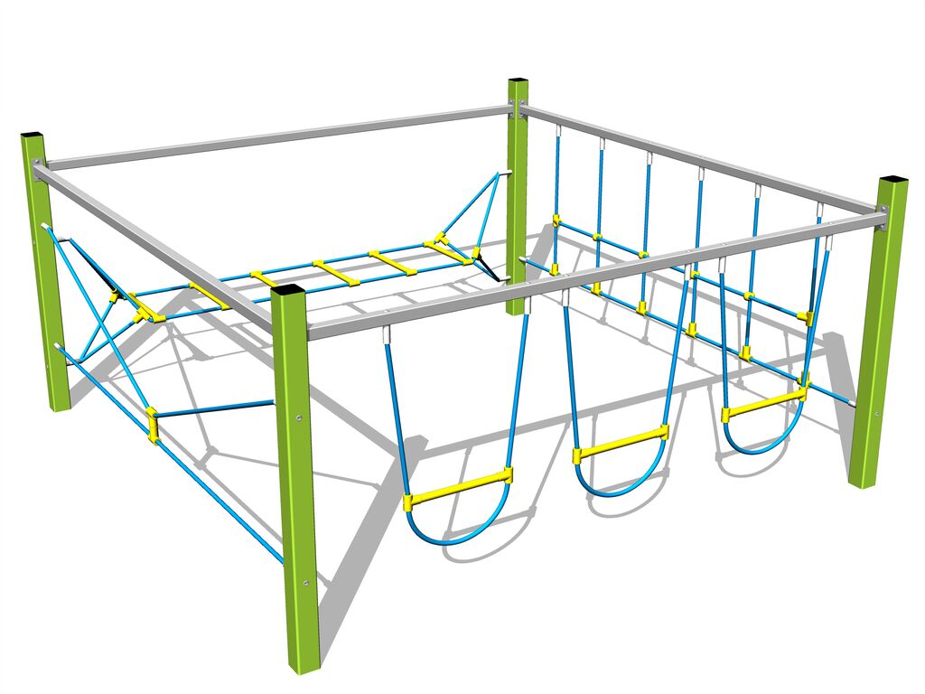 Frânghiile sunt realizate din material HERKULES (frânghii cu grosimea de 16 mm din polipropilenă cu miez interior din oțel) și sunt conectate cu îmbinări din plastic. Toate materialele de fixare sunt galvanizate sau sunt realizate din oțel inoxidabil.